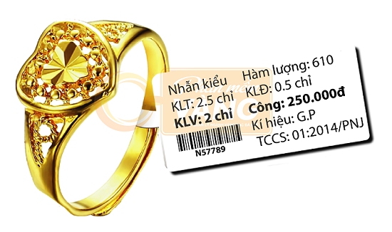 Trên decal tem vàng, tem trang sức cần thể hiện nhiều nội dung: khối lượng tổng, khối lượng vàng, tiền công cán, nguồn gốc, xuất xứ, tiêu chuẩn chất lượng, mã vạch…v.v..và dòng máy in tem vàng bạc cần phải in được nội dung như vậy trên decal tem vàng.