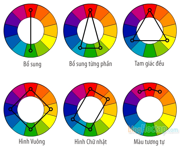 Nếu bạn phối những màu dương tính cơ bản bạn sẽ được những màu âm tính cơ bản và ngược lại.