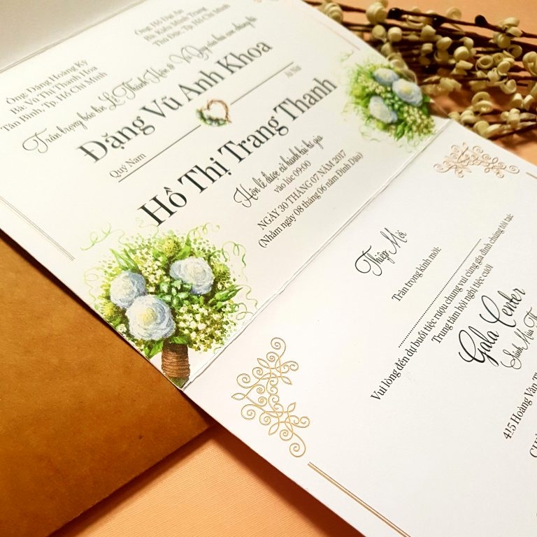Thiệp cưới quan trọng là vì nó thể hiện được những thông tin về cô dâu-chú rể và các thông tin khác như thời gian tổ chức hỗn lễ, địa điểm ở đâu? Thiệp cưới thường được in rất tỉ mỉ nên việc tìm cho mình cách chọn giấy in thiệp cưới cũng là một phần không thể thiếu được.