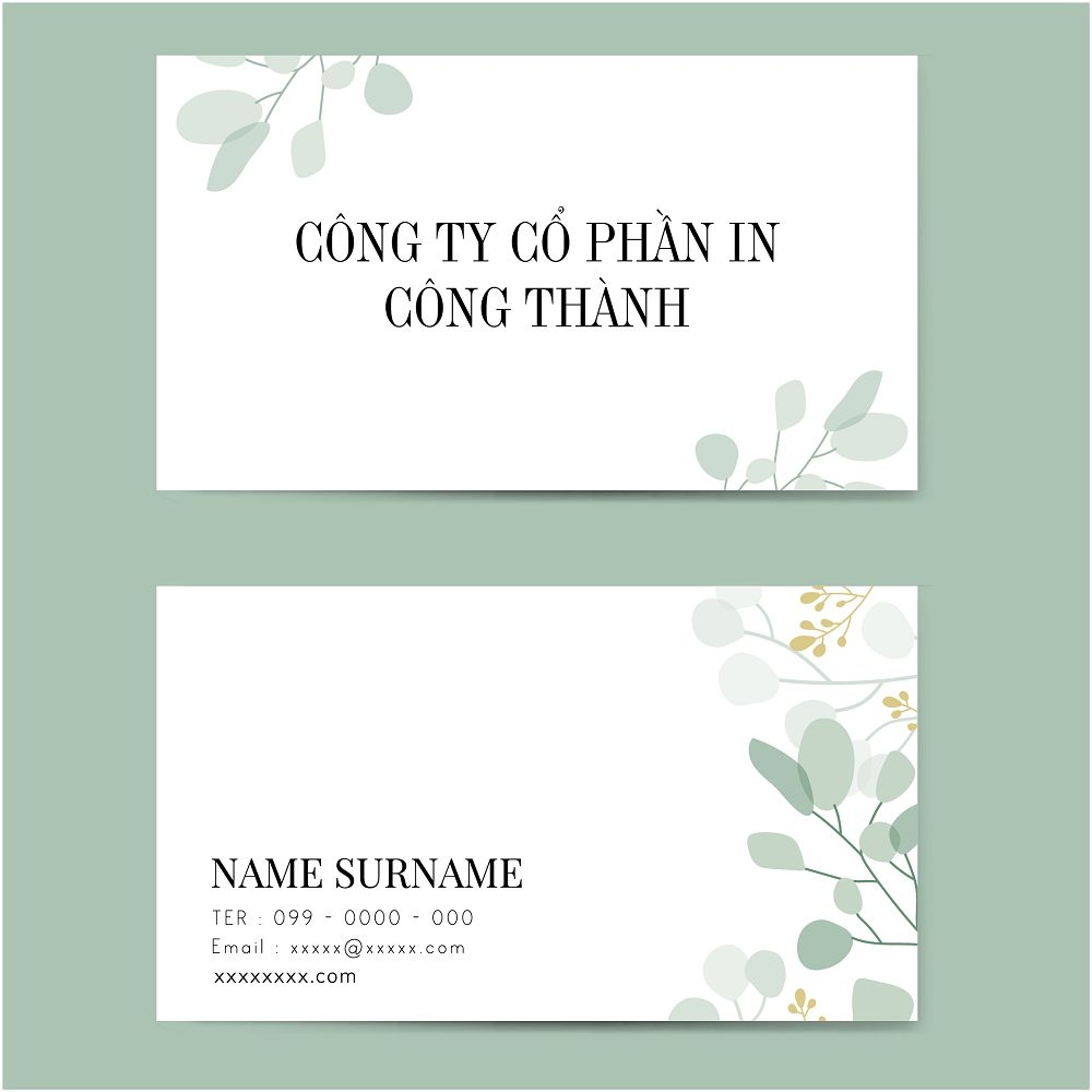 Danh thiếp có kích thước 5.4 x 8.9 cm được in trên giấy britol 280-300 gr/cm2, được cán màng 2 mặt để chống trầy xước