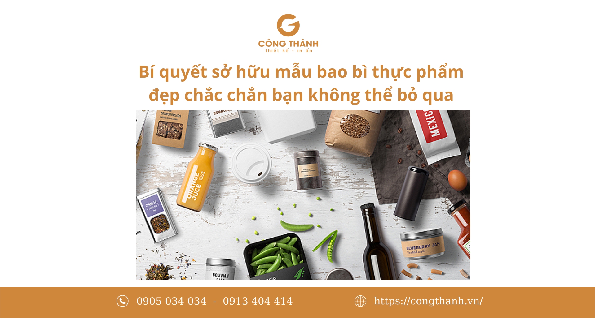 Thực phẩm mà doanh nghiệp bạn kinh doanh có chất lượng tuyệt vời và bao bì thực phẩm sẽ giúp khách hàng thấy được điều đó. Một mẫu bao bì thực phẩm đẹp, tốt giúp hình ảnh thương hiệu của bạn được nâng cao. Nếu bạn đang có ý tưởng về bao bì hãy liên hệ với Công Thành để cùng tạo ra thiết kế xứng tầm để xây dựng thương hiệu của riêng mình.
