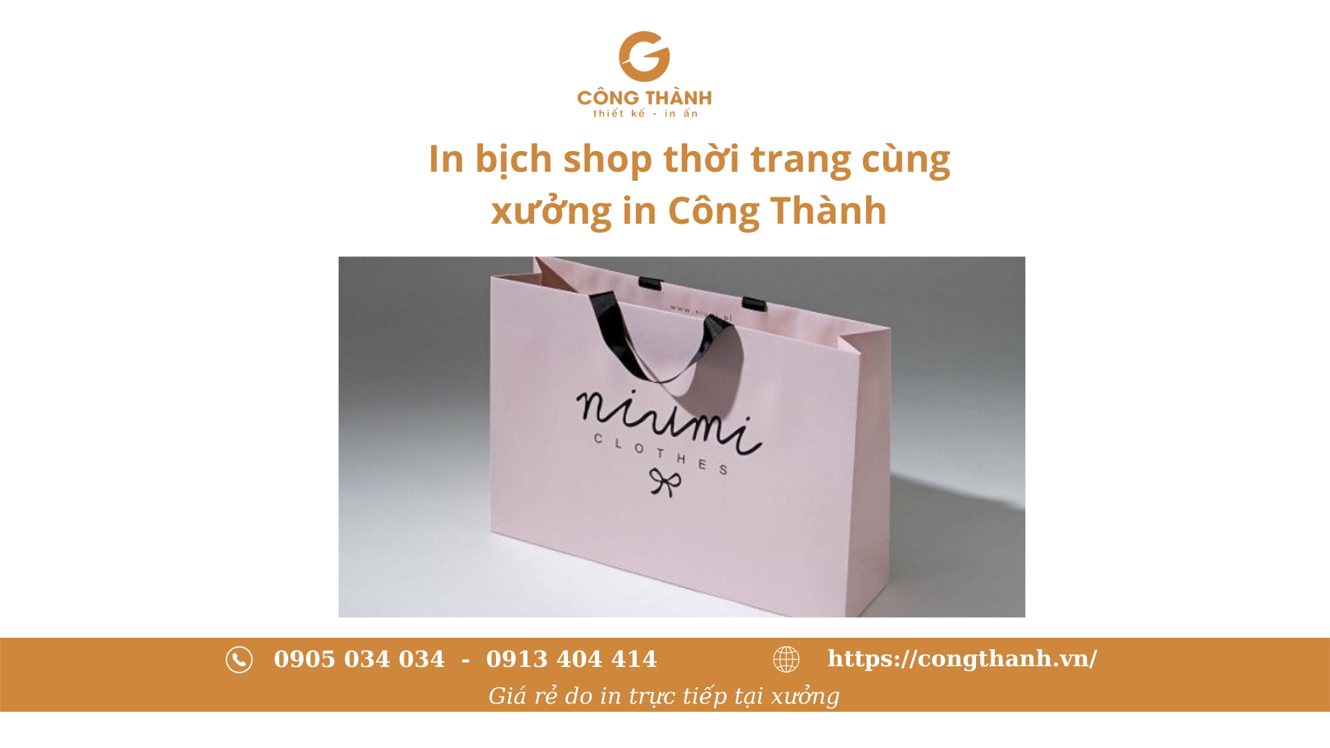 >>> Xem chi tiết tại: Xưởng in bao bì uy tín Công ThànhBài viết trên Công Thành đã giới thiệu những kiến thức cơ bản về in bịch shop mà bạn cần biết. Hãy liên hệ ngay với Công Thành theo số hotline: 0905.034.034 - 0913.404.414 khi bạn cần một đội ngũ chuyên nghiệp để in ấn thiết kế menu quán của bạn.