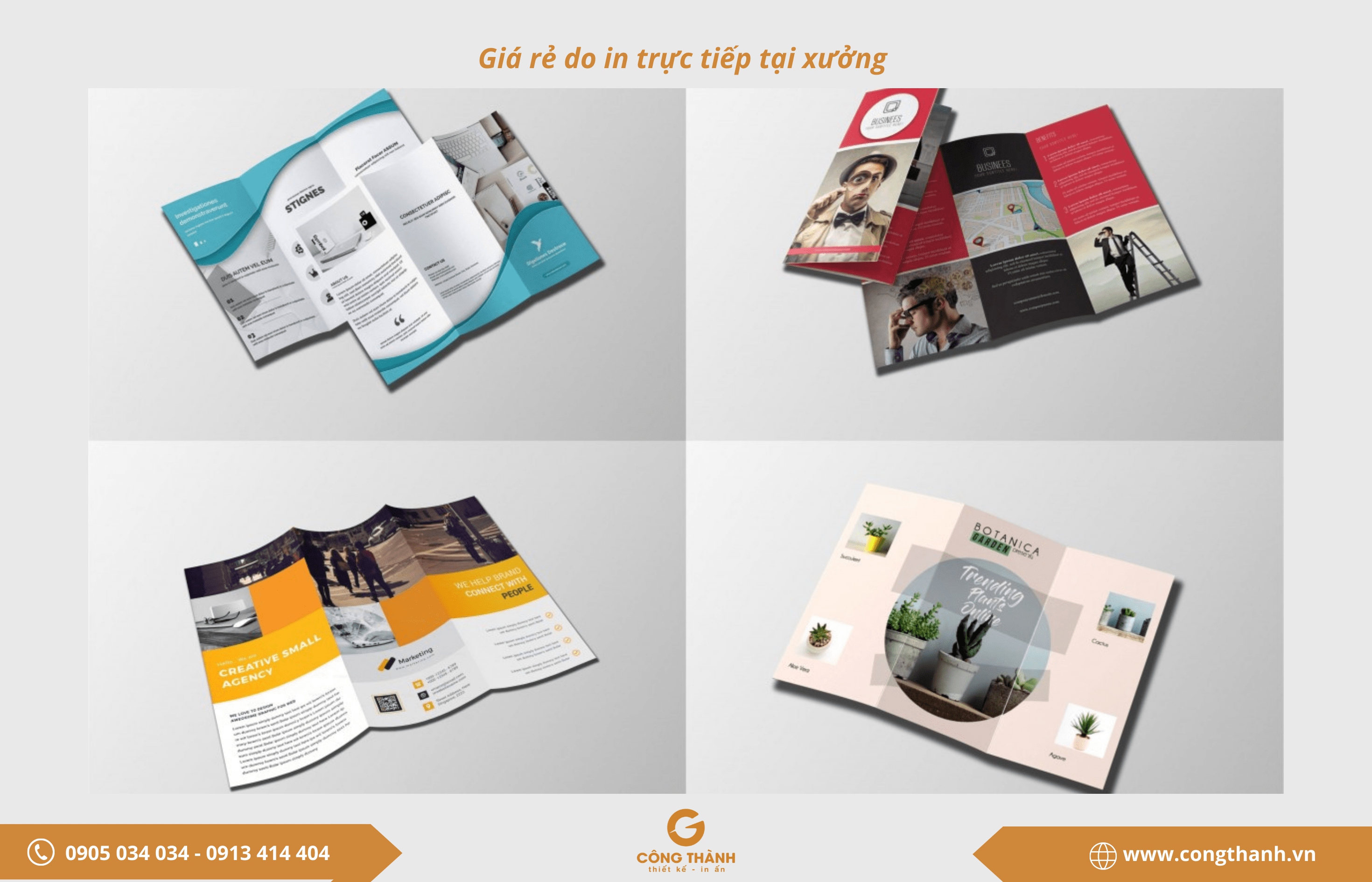Từ in menu, thiệp đám cưới cho đến làm catalog sản phẩm và tờ rơi đều có thể sử dụng brochure.