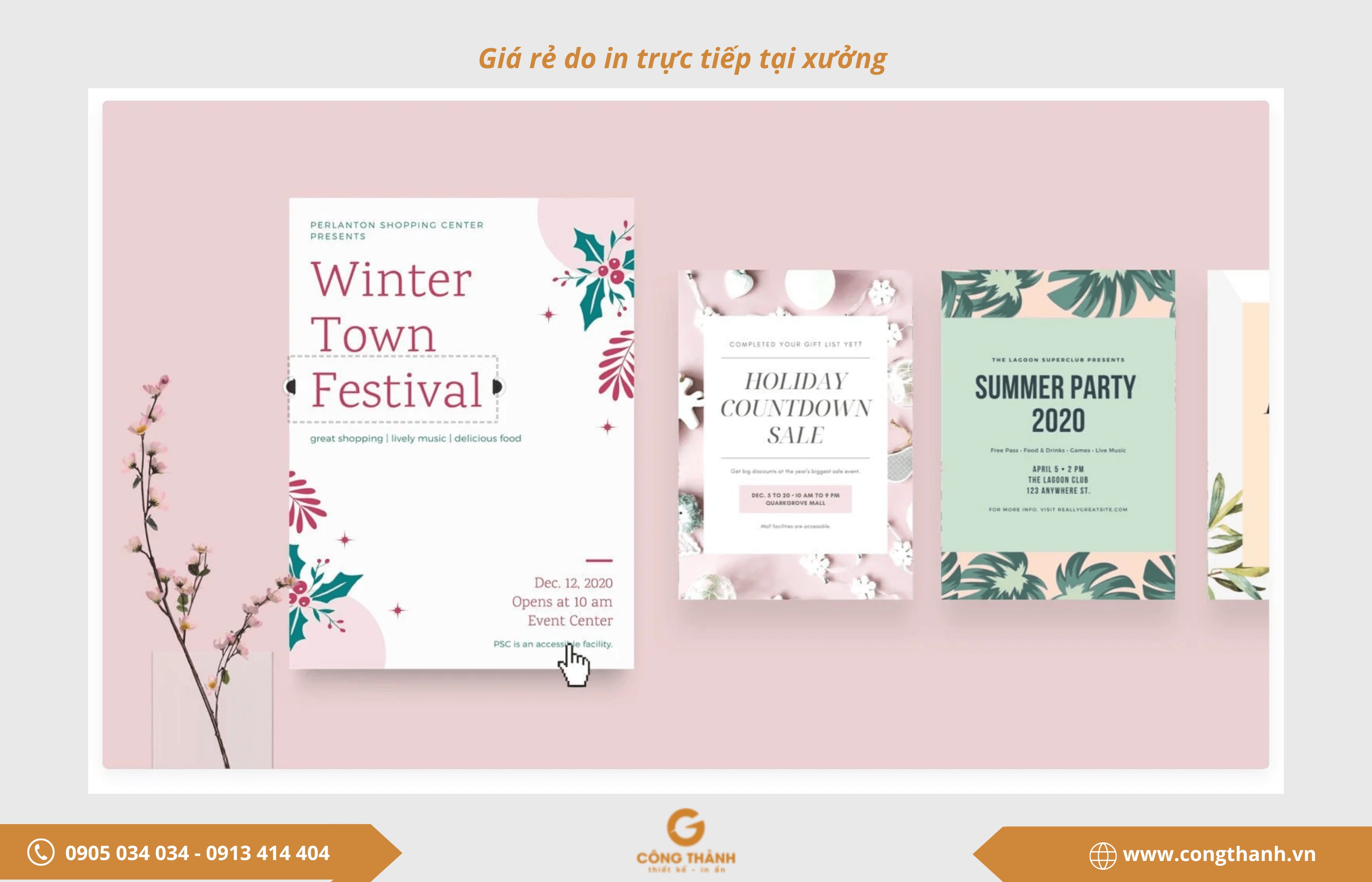 Công cụ có nhiều những mẫu tờ rơi đẹp cho bạn lựa chọn. Kích thước khổ letter mặc định là 8,5 x 11 inch. Nhưng kích thước này có thể thay đổi tùy chỉnh theo nhu cầu của bạn.